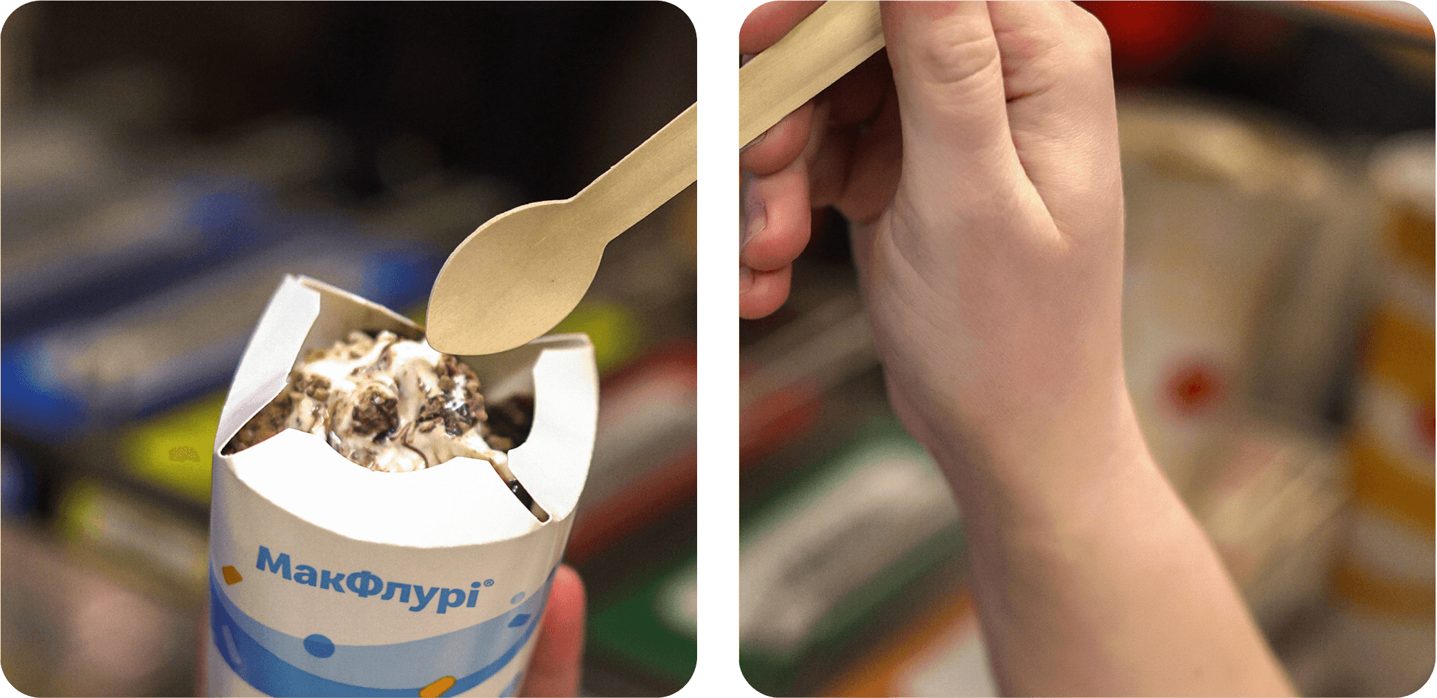 У 2019, наприклад, відмовилися від пластикових кришок для “МакФлурі” — це зменшило щорічне використання пластику на 27,5 тонн. А в минулому році компанія перейшла на обгортки для бургерів із відновлюваних матеріалів та стаканчики для “МакСанді” з формованого целюлозного волокна.