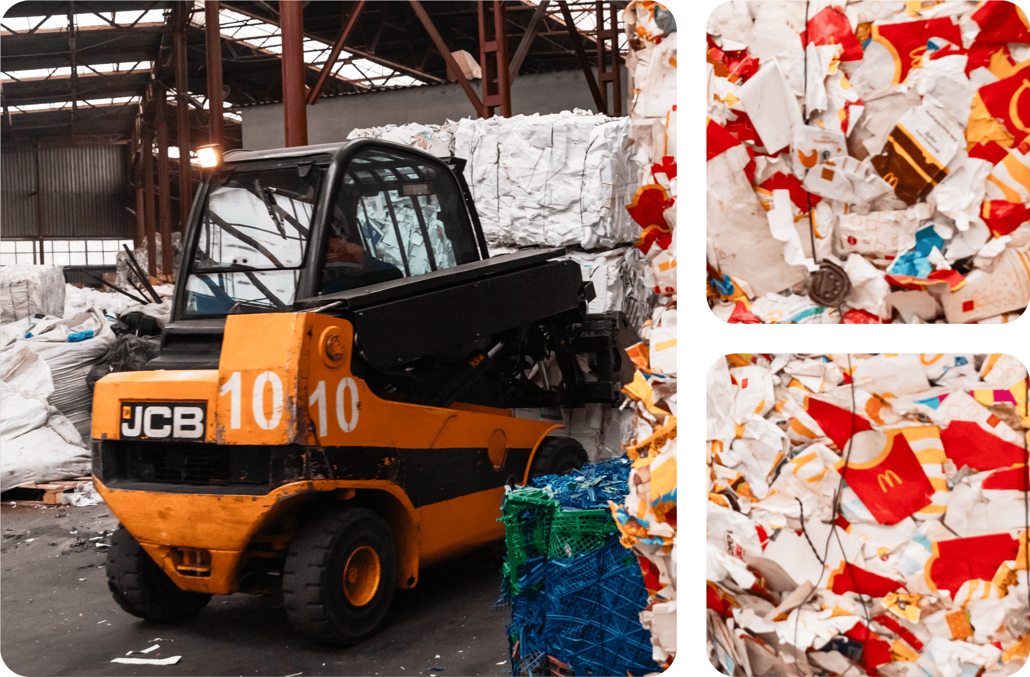 “МакДональдз” створив екосистему партнерства, співпрацюючи з близько 20 підприємствами у різних регіонах країни. Партнери забирають відходи з ресторанів, досортовують та очищають від забруднень, після чого передають на переробні підприємства.
