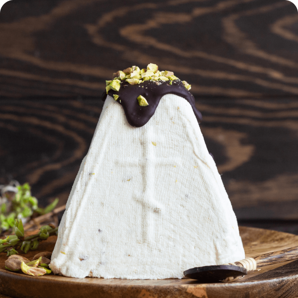 Окрім класичної, мережа пропонує паску “Фірмову” та її варіант із мигдальними пластівцями. Їх особливість — додавання сушеної журавлини та цукатів, а також вишукане оформлення білою помадкою з перламутровою посипкою.