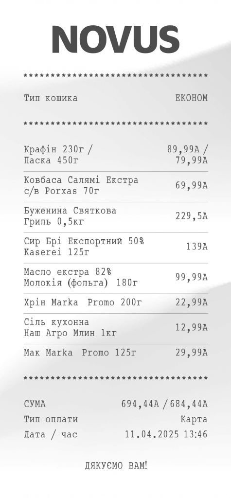 Супермаркети NOVUS суворо дотримуються всіх державних стандартів якості та безпеки продуктів. Тут проводиться регулярний контроль і перевірки, щоб гарантувати безпечність усього асортименту.